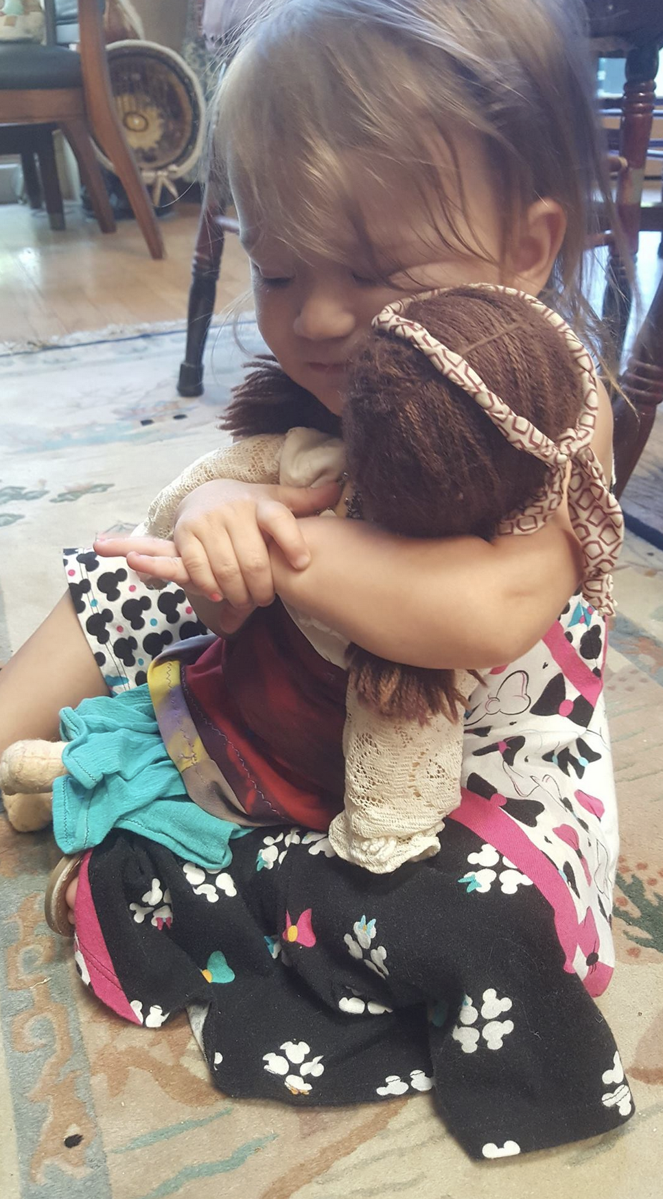“I know you!” my two year old granddaughter cried out as she blazed her way into my Dad’s living room and pulled a fabric doll, nearly as big as her, out of a basket and held it tight.